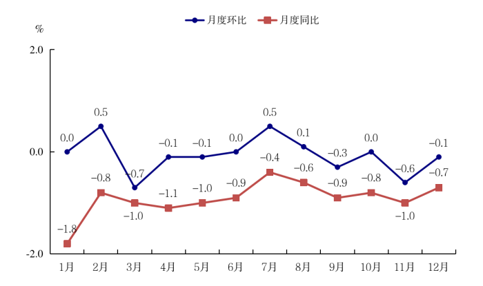 全年市辖区居民消费价格比上年下降0.9%,其中食品烟酒价格下降0.9%。