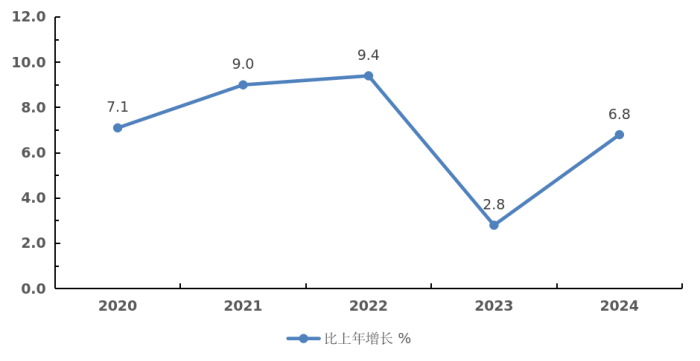 图8 2020-2024年居民人均可支配收入及其增长速度