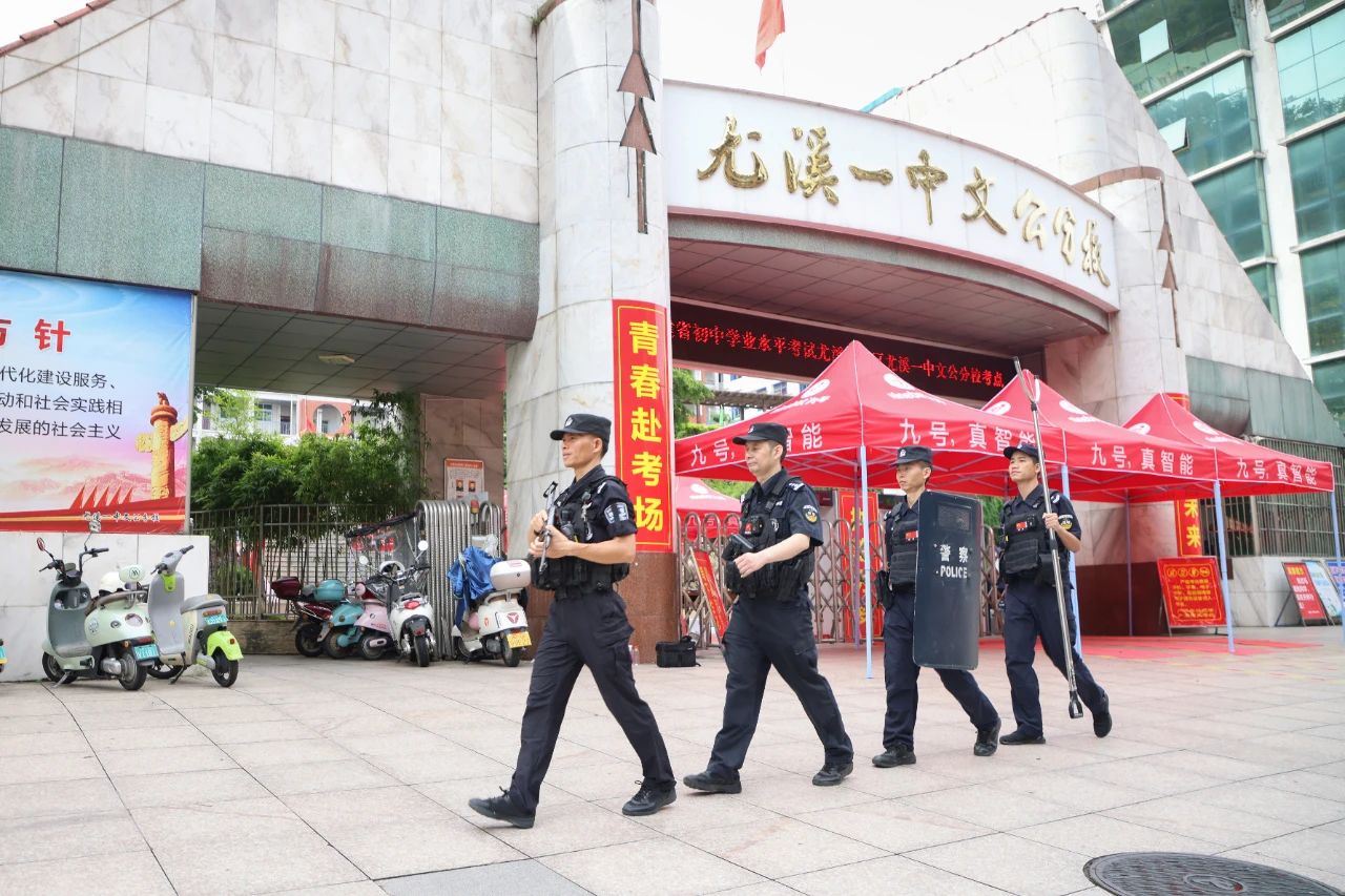 公安部门共投入警力3860余人次、警车1035台次,成立护考小分队86支,排查考点周边治安复杂场所 163家,整治治安乱点8个,整改各类安全隐患19处,考试期间在考点门口设立警方服务站50个,为考生提供通行、转送服务330人次,帮助考生找回遗失物品、证件30件。坚持“整体防控、以面保点”,加强考点及周边区域交通管理定点守护、武装巡逻等工作,确保中考安全平稳有序。