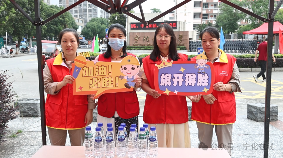 考点外设立爱心服务站,免费向考生和家长发放矿泉水、扇子等物资,以及寓意“一举夺魁”的向日葵鲜花,为考生送上一份温暖和鼓励。