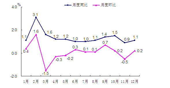 图1 2018年市辖区居民消费价格月度涨跌幅度
