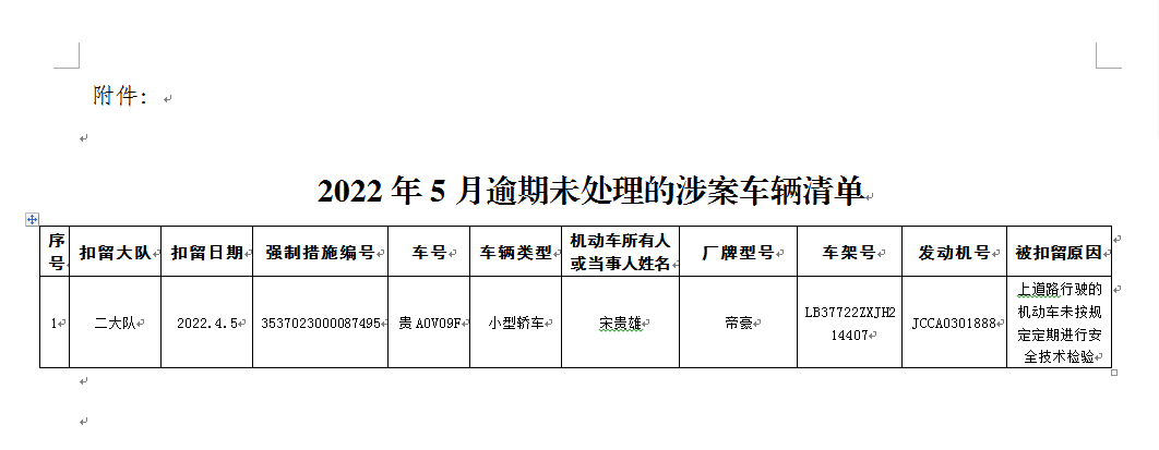博牛 高速交警支队关于2022年5月逾期未处理涉案车辆的公告