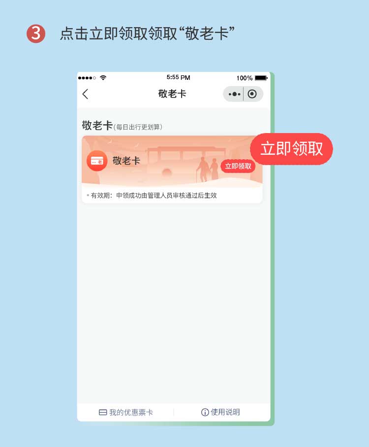 3.点击“立即领取”进入敬老卡申领页面。