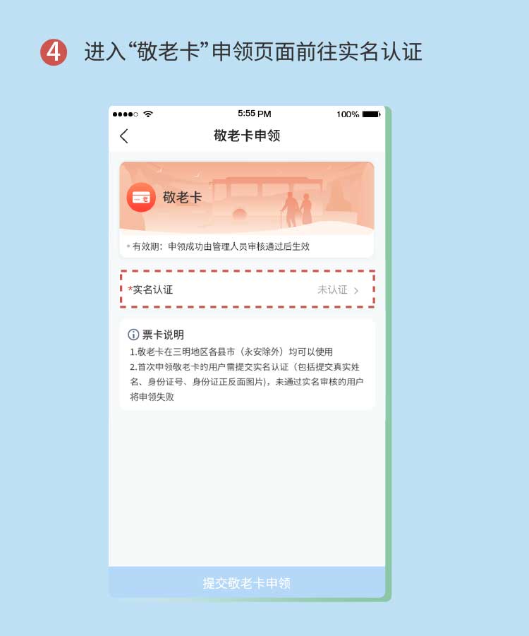 4.进入“敬老卡”申领页面,前往“实名认证”。