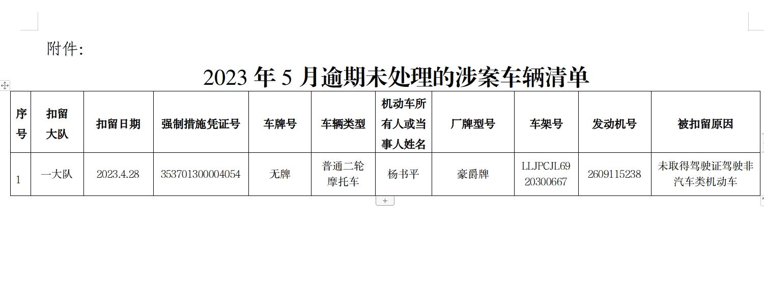 博牛 高速交警支队关于2023年5月逾期未处理涉案车辆的公告
