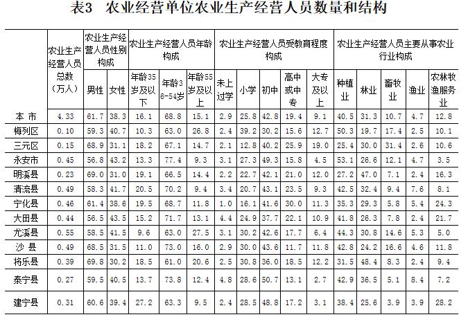 第三次全国农业普查对我市农业生产经营人员情况进行了调查。现将主要结果公布如下: