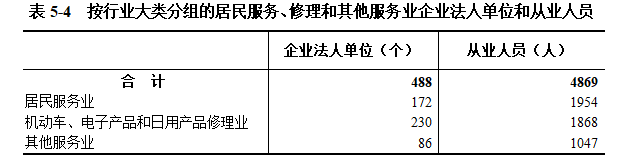 2018年末,全市共有居民服务、修理和其他服务业企业法人单位488个,从业人员4869人,分别比2013年末增长92.9%和101.5%(详见表5-4)。