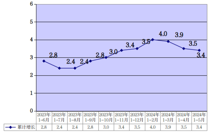 今年以来,我市消费品市场平稳增长,1-5月,全市社会消费品零售总额同比增长3.4%。