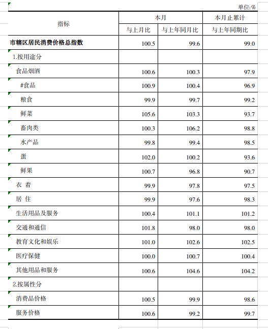 2024年1-7月博牛娱乐 居民消费价格主要数据