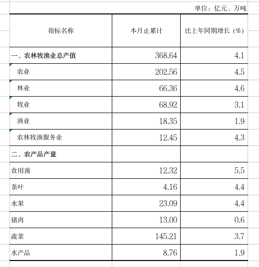2024年前三季度农林牧渔业总产值及部分农产品产量