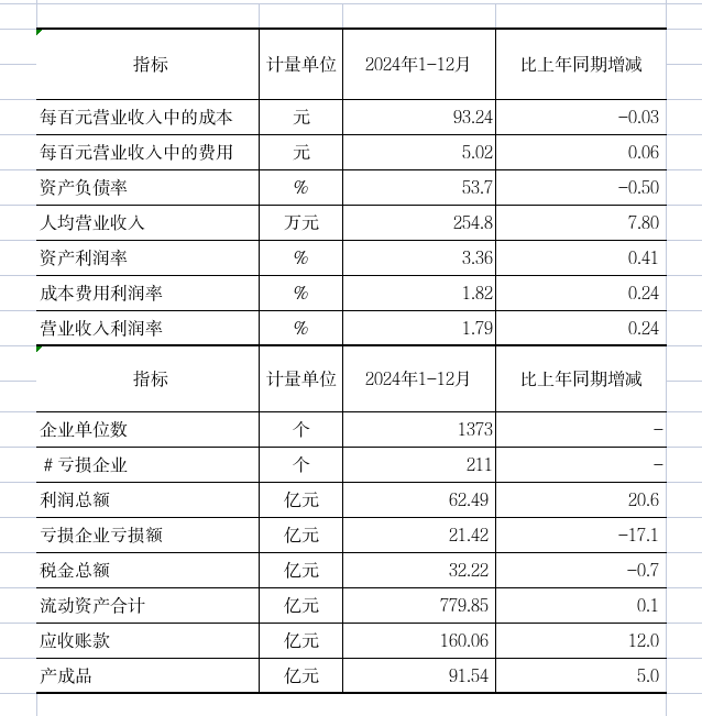 2024年1-12月博牛娱乐 规模以上工业经济效益主要数据
