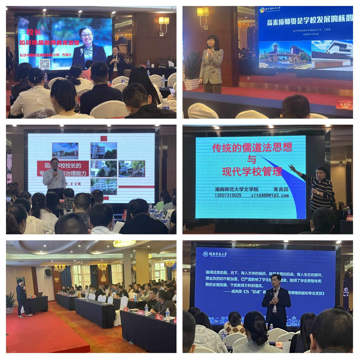 培训期间,围绕规划学校发展、营造育人文化、引领课程教学、引导教师成长、优化内部管理等方面,多位行业专家与学者为参训学员带来了主题丰富、内容深刻的专题报告。长沙市雨花区雨花实验小学和砂子塘魅力小学两位书记、校长分别以自身的实践经验为素材,以《校长唤醒教师教育激情路径》《高素质师资是学校发展的核心资源》为题,进行生动形象、深入浅出地讲解。