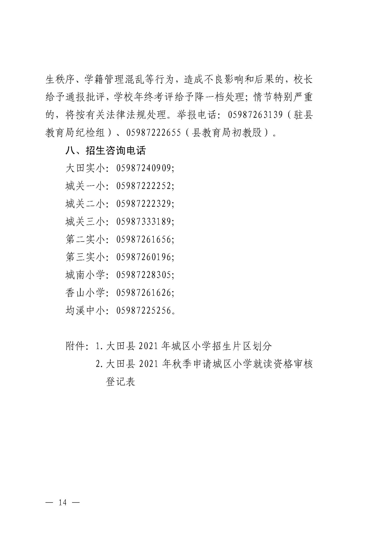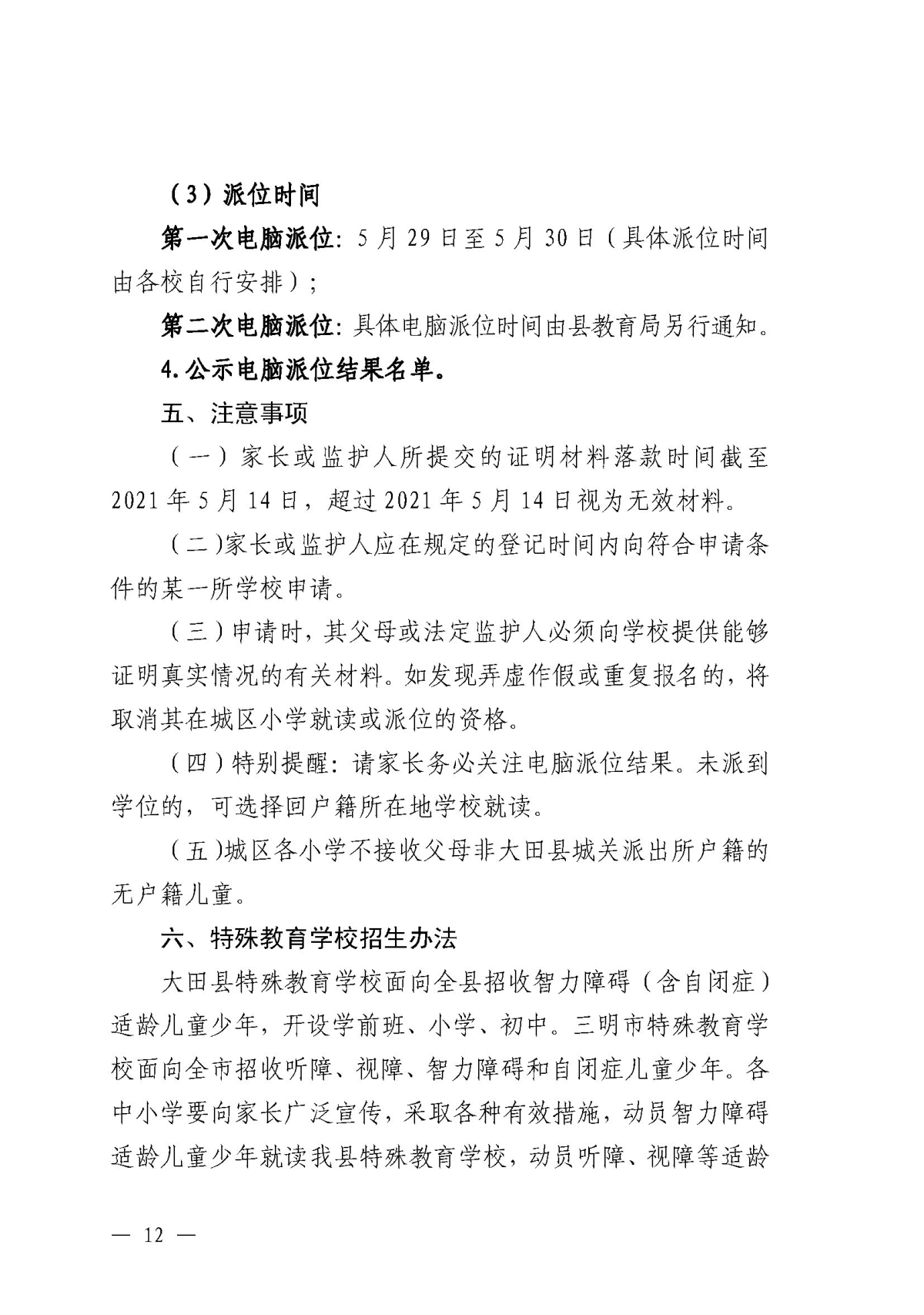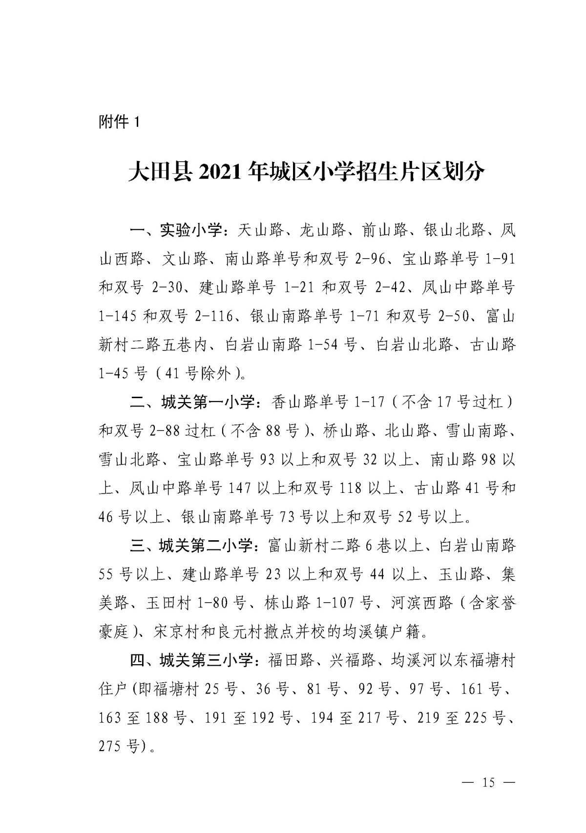 大田县人民政府办公室关于印发大田县2021年城区小学招生工作意见的通知