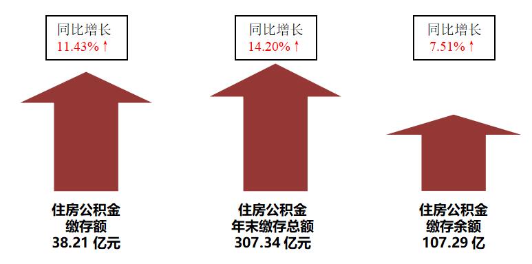 2019年住房公积金缴存额38.21亿元,同比增长11.43%;实缴单位7942家,同比增长9.70%;2019年末缴存总额307.34亿元,较上年末增长14.20%;2019年末缴存余额 107.29亿元,较上年末增长7.51%。