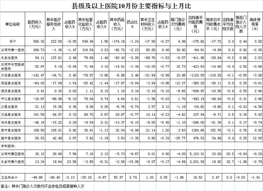 第一医院同比增长12.42%、沙县总医院同比增长10.15%。