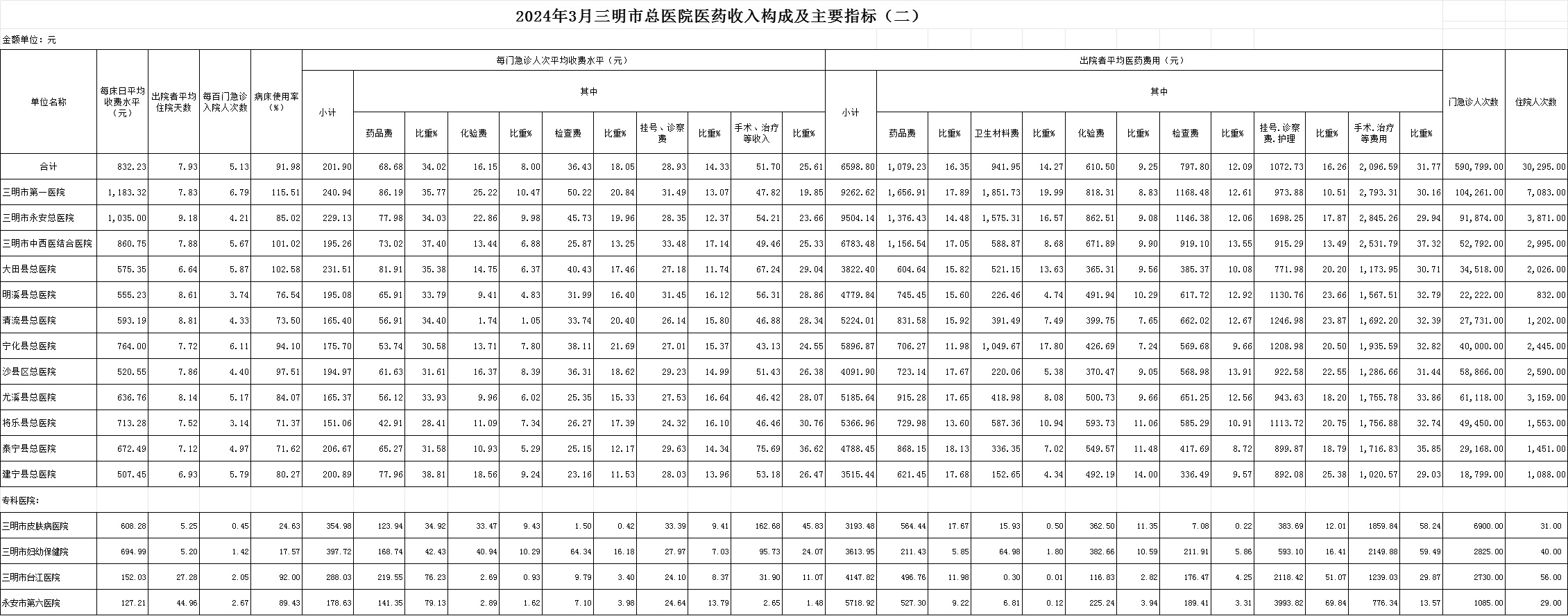 次均费用。3月份12家总医院每门诊次均费用201.90元,比去年同期的220.22元,减少18.32元。出院者平均费用6598.80元,比去年同期7055.35元,减少456.55元。