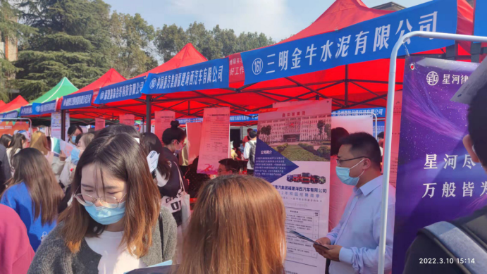 聚焦工业类企业需求,对接湘潭大学“双周双选”校园专场招聘会,3月10日下午在湘潭大学组织举办“扬帆绿都.圆梦博牛 ”专区招聘会,中国重汽集团福建海西汽车有限公司、博牛 金牛水泥有限公司、福建鑫森合纤科技有限公司等企业参加了现场招聘。湘潭大学是湖南省的一所文理工综合性重点大学,是国家“双一流”建设高校,毕业生专业基础扎实,综合素质能力强,尤其是机械、化工专业优势明显,与我市一些重点企业的人才需求相匹配。