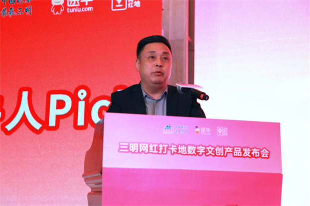 途牛旅游网副总裁王树柏分享了依托“途数胜境”研发“首批博牛 网红打卡地数字文创产品”的过程,表示此项目的核心是为各网红打卡地赋能新的经济价值、数字价值,达到引流并促进消费的效果。