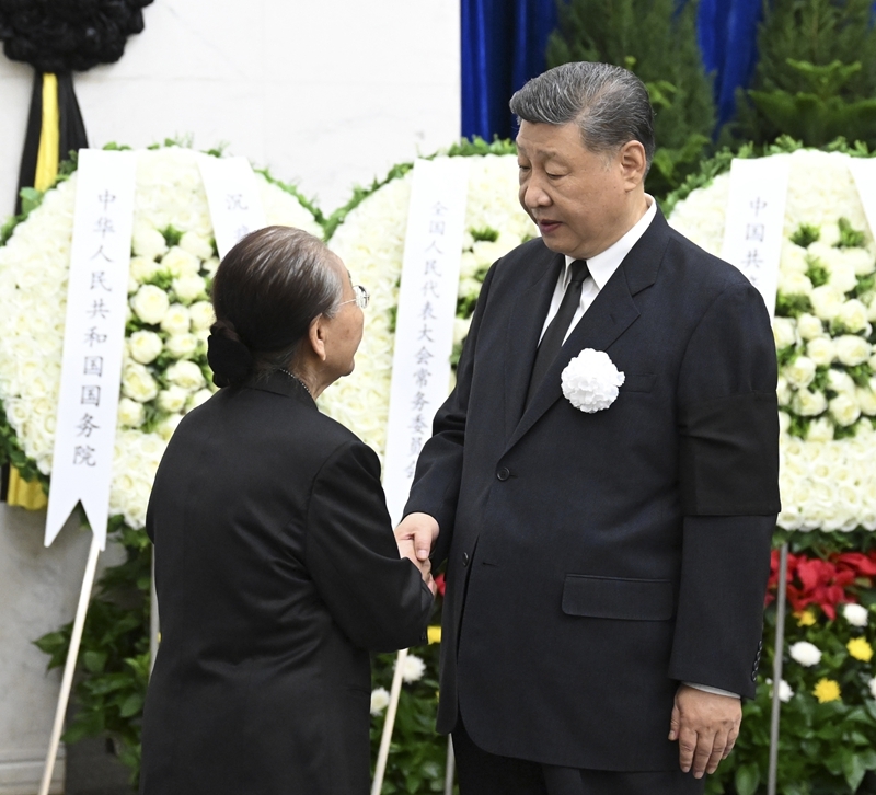 上午9时30分许,习近平、李强、赵乐际、王沪宁、蔡奇、丁薛祥、李希等,在哀乐声中缓步来到热地同志的遗体前肃立默哀,向热地同志的遗体三鞠躬,并与热地同志亲属一一握手,表示慰问。